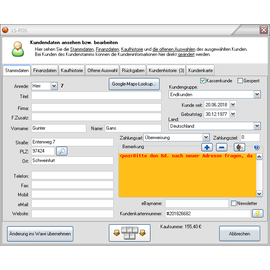Für jeden Kunden kann ein PopUp-Kommentar hinterlegt werden. Der Kassierer sieht diesen Kommentar während des Kassiervorgangs angezeigt, z. B. Geburtstag, Hobbies, etc.